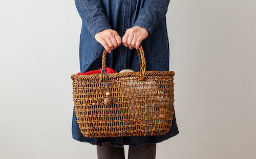 西和賀町の若畑地区で脈々と受け継がれてきたあけび蔓細工。夏から秋にかけて山に材料を集めに行き、農閑期に全て手編みで1つ1つ作り出される籠は今や貴重な品となりました。温かみのある素朴な雰囲気が人気のあけびかごです。