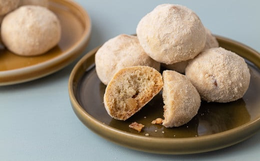 口に入れた途端ほろほろとほどける食感がクセになるクッキー。西和賀町産のそば粉を使ったサクサクの生地にアクセントのクルミが好相性。すっと溶ける粉雪のような和三盆糖をふんだんにまとわせた上品な甘さが人気を博しています。