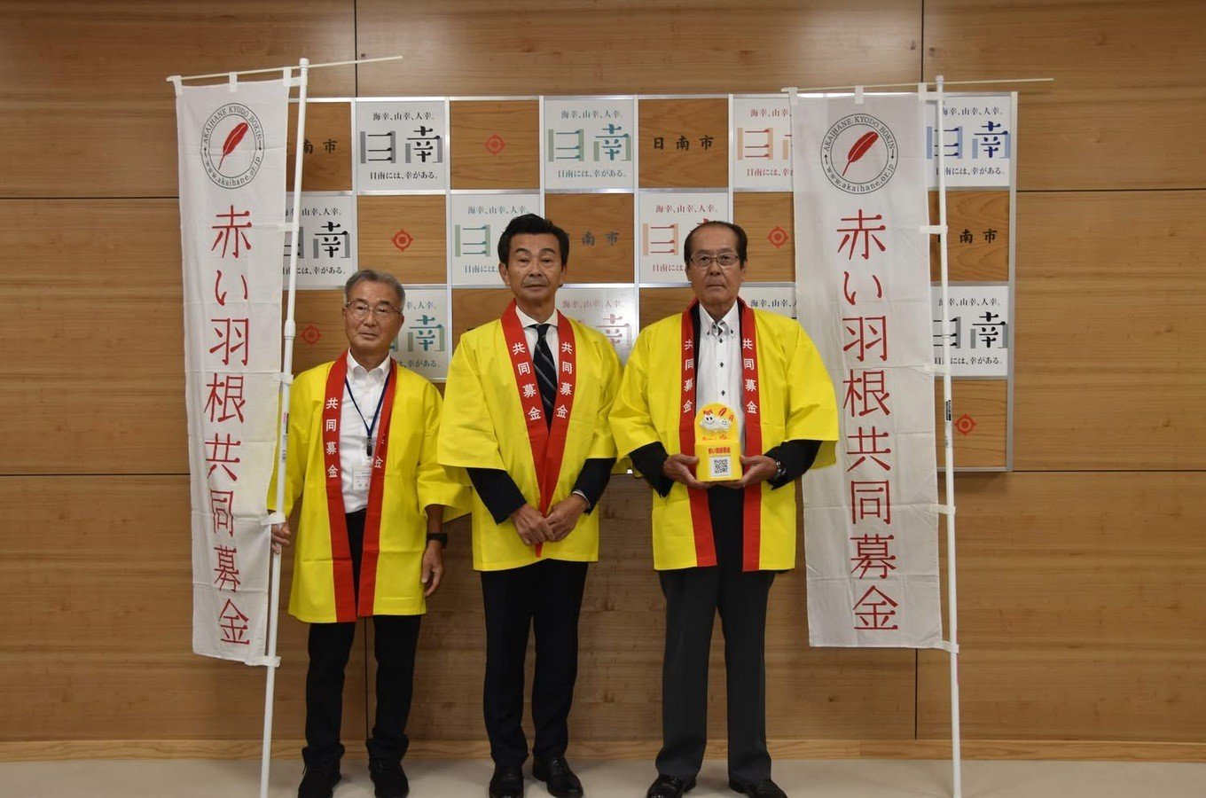 第79回赤い羽根共同募金運動が10月1日から始まりました。この日、日南市共同募金委員会の益田会長と水元副会長が高橋市長へ厚生労働大臣と中央共同募金会会長のメッセージを伝達し、募金への協力を呼びかけました。赤い羽根共同募金は、翌年3月31日まで行われます。