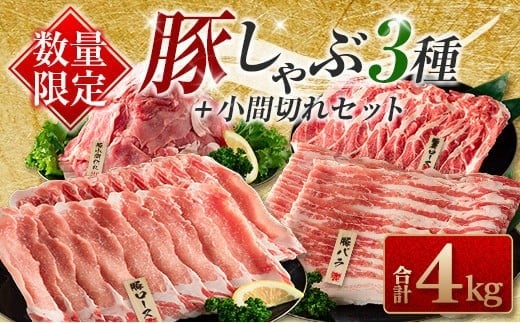 ≪数量限定≫豚しゃぶ3種+小間切れセット(合計4kg)