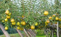 山形の代表的果物「ラ・フランス」特に上山産のラ・フランスは、太陽の恵みをいっぱいもらった平棚仕立てです。