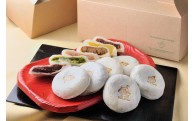 1個あたり約65gの焼きもち10 種(小豆・抹茶・きなこ・焙じ茶・紅茶・ショコラ・黒ごま・抹茶ミルク・白あん・さつまいも)に季節の焼きもち1種の計11種をお楽しみいただけます。