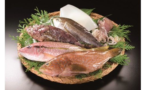 ・平戸産「なつ香ブリ」「なつ香タイ」「平戸本まぐろ極海一番」「イカ」「旬の鮮魚」5種の刺し身