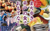 平戸城下旧町地区(中心市街地)一帯において、「食」「物産」をメインとした街歩き型のイベントです。市内の飲食店や団体の50店舗が出店しており、そのすべてのメニューが1品300円(秋まつりチケット3枚)で味わうことができます。また、ステージイベントや散策ラリーなどもあり、子どもから大人まで楽しめます。