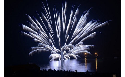 ※写真は十勝港海上花火大会の水上花火が爆音とともに広がる様子