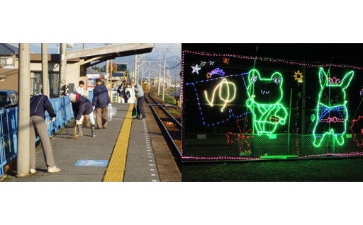 長い間地元住民に愛され大切に守られてきた養老鉄道。乗客が気持ち良く鉄道を利用できるように、まちの有志が駅やホーム、駅前広場の清掃や花壇を管理し、いつもとてもきれいな状態です。また、駅を彩るイルミネーションで飾り付けを施し、毎年12月に点灯式も行われます。
