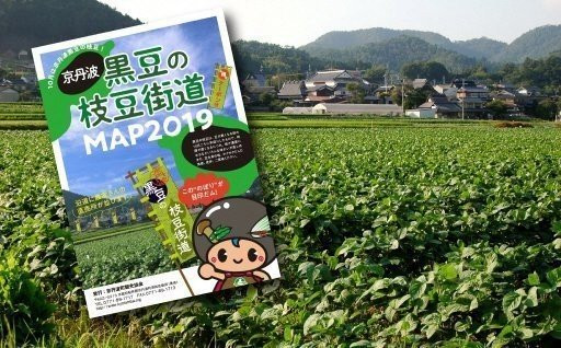 丹波黒大豆の産地・京丹波町では、毎年10月になると町内のあちらこちらに黒大豆の枝豆直売所がオープンします。丹波黒大豆を早採りして枝豆で食すのは秋限定の極上の味わい。京丹波町の特産品である黒豆をたくさんの人に買っていただけるよう、町内直売所情報を集約した「黒豆の街道MAP」を作成し、主産業である農林業の振興を図っています。