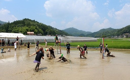 京丹波町では8つのエリアにおいて住民自治組織があり、地域の課題解決に向けた事業や地域おこしイベント、環境美化活動など様々な活動を通じて、住みよい地域づくりに向けた住民主体の取り組みが展開されています。また、それぞれの地域において、子どもからお年よりまで幅広い世代が活動に参加しており、地域住民同士のつながりや絆、世代を超えた交流も深まっています。京丹波町はこうした住民自治組織の活動を支援する「京丹波町住民自治組織によるまちづくり交付金」に皆様からいただいた寄付金を活用させていただき、それぞれの地域における住民主体の取り組みをサポートしています。(写真は休耕田でのどろんこバレーボール大会の様子。)