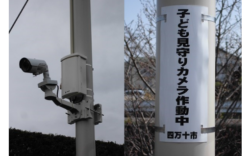 四万十市では、子どもを安全・安心に通学、遊ばせることのできる環境づくりや犯罪等の抑止・防止を目的とした防犯カメラを平成25年度から設置しています。