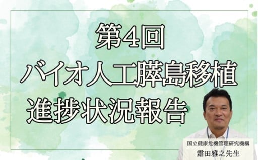 しかしながらバイオ人工膵島移植実現に向けて、松本慎一先生とともにバイオ人工膵島移植の実現に向けて頑張る国立健康危機管理機構(旧国立国際医療研究センター)の霜田雅之先生にも、毎月進捗状況を報告していただきます。
