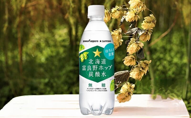 上富良野産ホップのエキスを抽出して無糖炭酸水に加えた「ホップの香りが爽やかな無糖炭酸水」。甘くなく、すっきりした味わいなので飽きずに飲み続けることができます。食事のおともにもぴったりです。