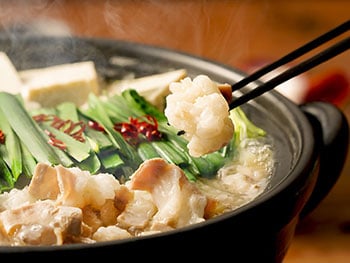 資さんうどんの人気メニュー「肉ごぼ天うどん」と福岡名物「もつ鍋」のセットです。適度な歯ごたえともちもち感のあるうどん麺、昆布・椎茸・さば節・うるめ節・かつお節から取ったつゆ、牛もつの大トロ「テッチャン」のみを贅沢に味つけしたもつ鍋、一度食べたら忘れられないおいしさを、ご家庭でどうぞ。