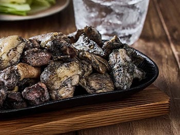 新鮮な宮崎県産の鶏肉が食べられる「元祖ざる焼き小林養鶏」。柔らかくジューシーな若鶏もも、程よい弾力の種鶏もも、希少部位の鶏カルビ、柔らかくコリコリとした食感のヤゲン軟骨の4種が入っています。着色料や香料を使用しない、炭本来の風味を味わってください。