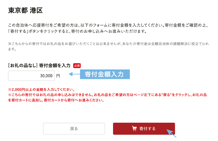 寄付金額を入力し、【寄付する】をクリックしてください。