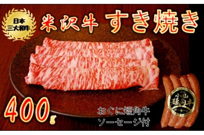 【生活応援】【期間限定】米沢牛すき焼き400g+山形おぐに産短角牛ソーセージ