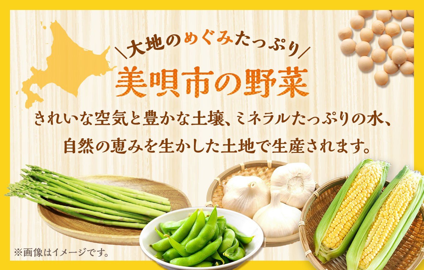 大地の恵みたっぷりのおいしい農作物をご紹介! きれいな空気と豊かな土壌、ミネラルたっぷりの水、自然の恵みを生かした土地で生産される 北海道美唄市の野菜をぜひご賞味ください。