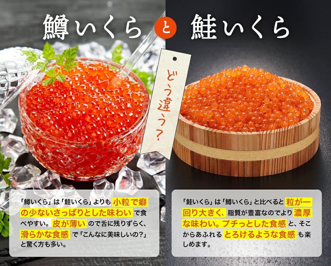【北海道の一等の証、紋別でとれた海の幸。自信を持って食卓へお届けしたいから、最上級の気持ちを込めたブランドネーム。ぜひ、お召し上がりください。】北の海が育む、奥深い味と香り上級鮭でつくる高品質ないくら。極寒の海が育んだ力強い旨味。雄大で厳しい北の海が育む新鮮素材。奥深い味わいと香りが織りなす旨味、恵み豊かな海から届くおいしさをお楽しみください。高級店・本物にこだわるお店で使用される、濃厚・大粒な鮭いくらの醤油漬けです。 熟練の職人技が磨き上げた味をご家庭で手軽にお楽しみ頂けます。 ※パッケージデザインは予告なく変更になる場合があります。 ※画像はイメージです。
