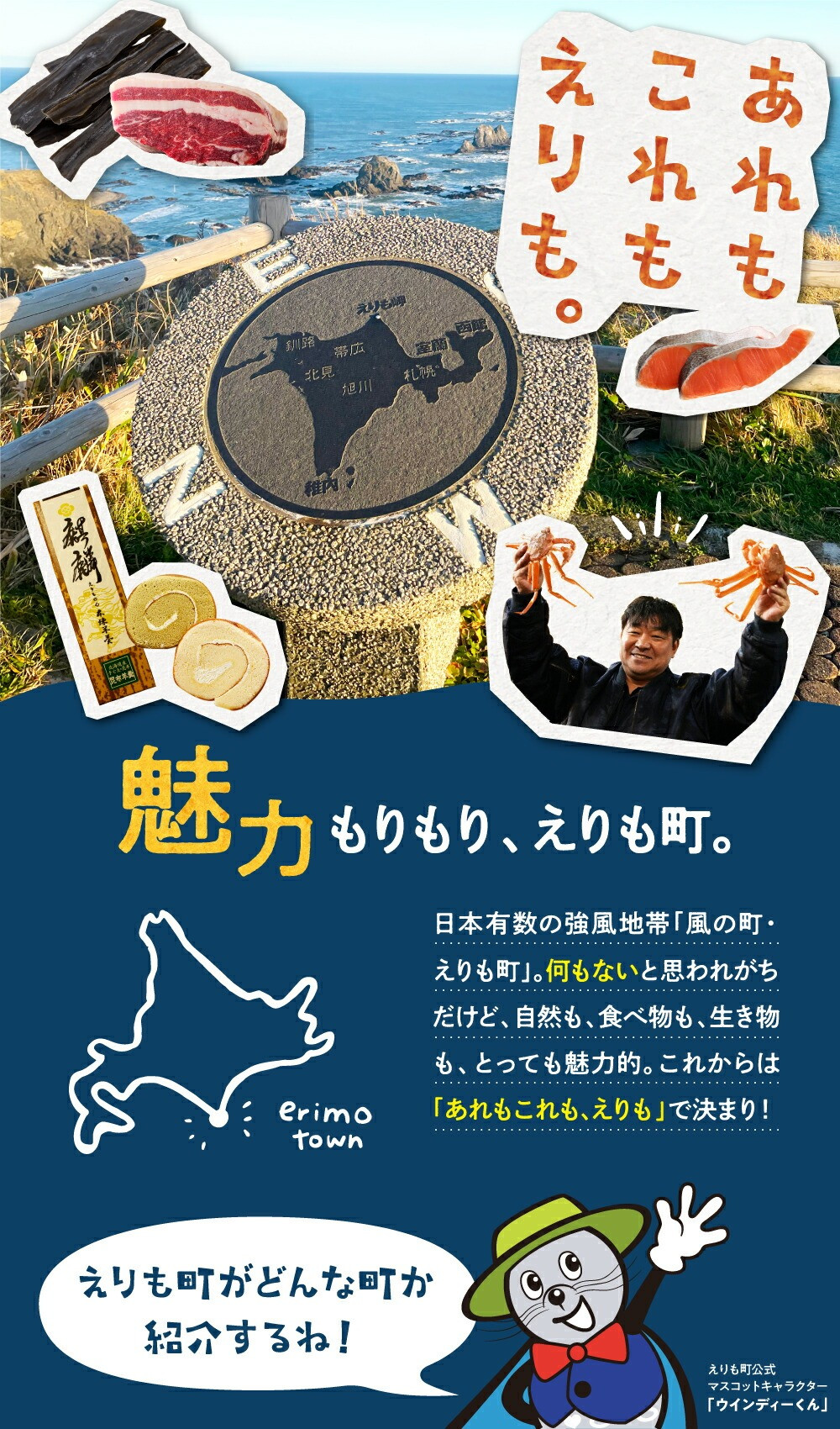北海道日高地方の南部に位置するえりも町。有名な襟裳岬があり、東西南を海に囲まれた漁業の盛んな町です。