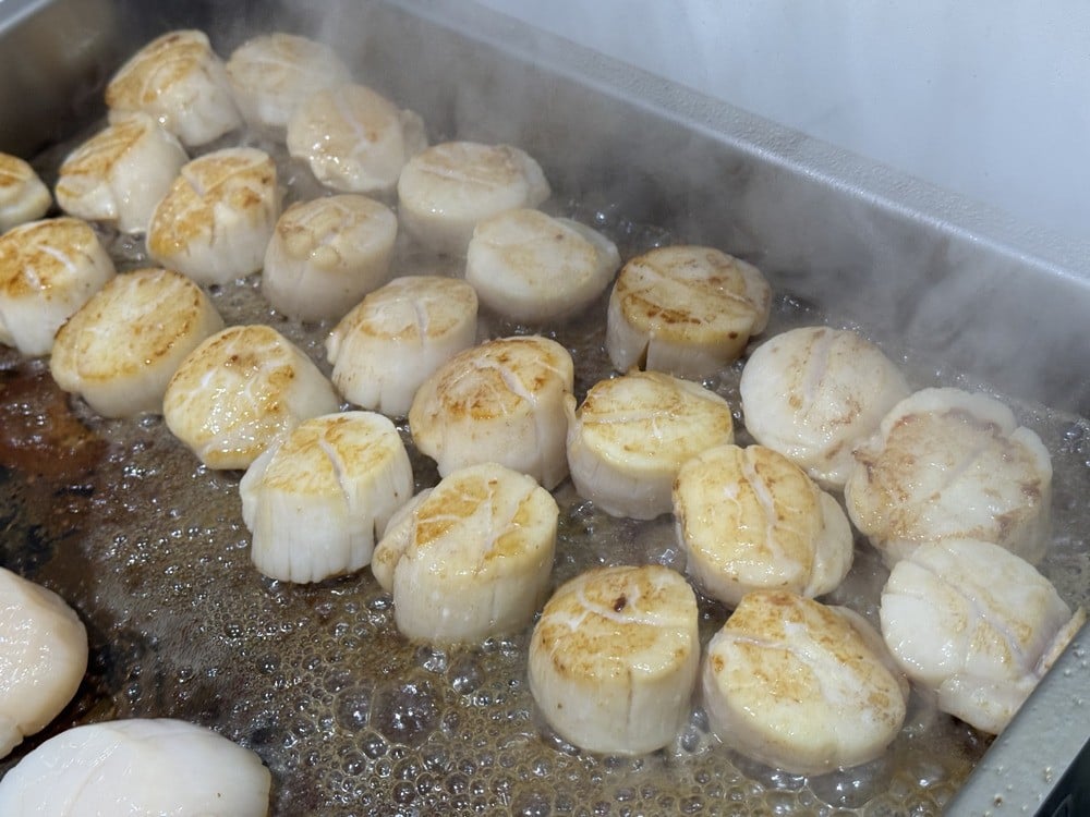 鮮魚売り場ではまずお目にかかれないLサイズのジャンボほたてを、別海町産のべつかいバターでバター焼きにして提供しました。