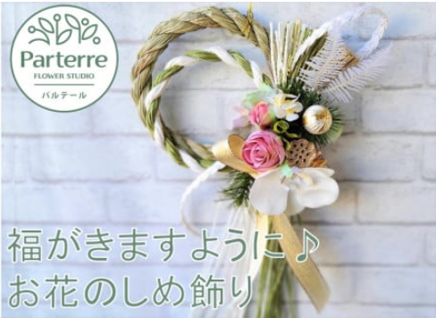 パルテール お花のしめ縄飾り 12/22までの受付で年内配送 心を込めて花屋さんが造ったしめ縄飾りでおめでたいお正月を明るく華やかにお迎えください。