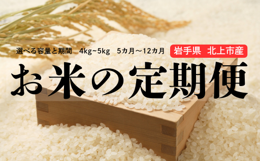 岩手県北上市産のお米の定期便特集です。4kg~5kgをお選びいただいた期間、毎月お届けします。 ひとめぼれ、銀河のしずく、特別栽培米がございます。 毎年ご好評いただいている北東北、岩手県北上市のおいしいお米を是非食卓で味わってください。
