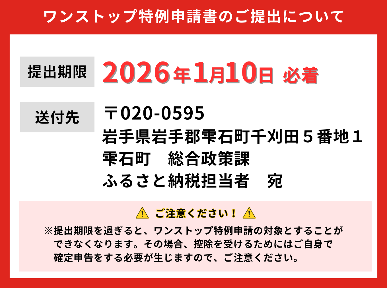 雫石町ふるさと納税について、2025~2026年にかけての年末年始のご案内です。