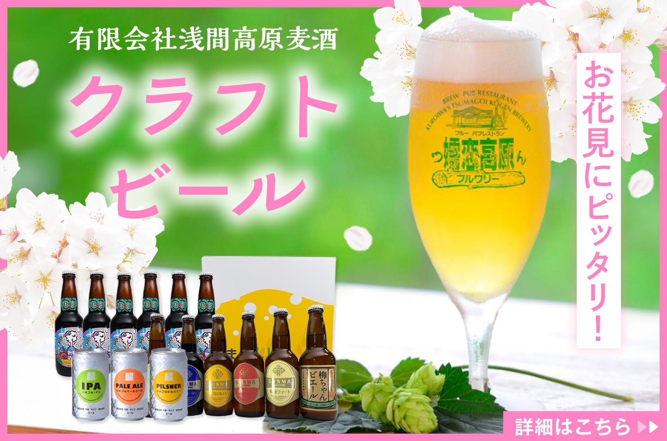 嬬恋の清らかな水と麦芽鮮度にこだわった麦の風味豊かな本格的な地ビールが、お花見をより一層引き立てます。