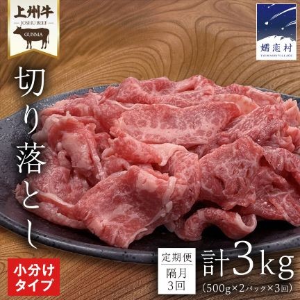 【 定期便 隔月 3回 】上州牛 切り落とし 1kg ( 500g × 2パック…