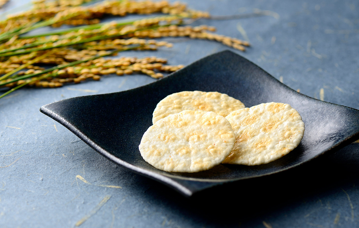 滋味豊かで、透明な薄紅色の神秘的な姿から「富山湾の宝石」とも呼ばれている富山湾のしろえびと、富山県産米を贅沢に使った薄焼きせんべい。香り高く上品な味わい、パリッとした食感でお酒のアテにもピッタリです。