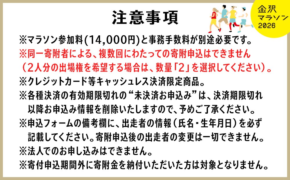 ・金沢マラソンの参加資格や注意事項等は金沢マラソン2026募集要項に準じます。