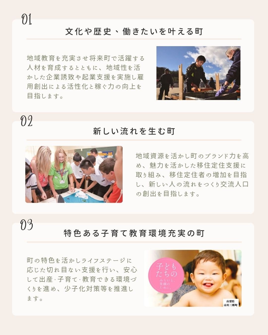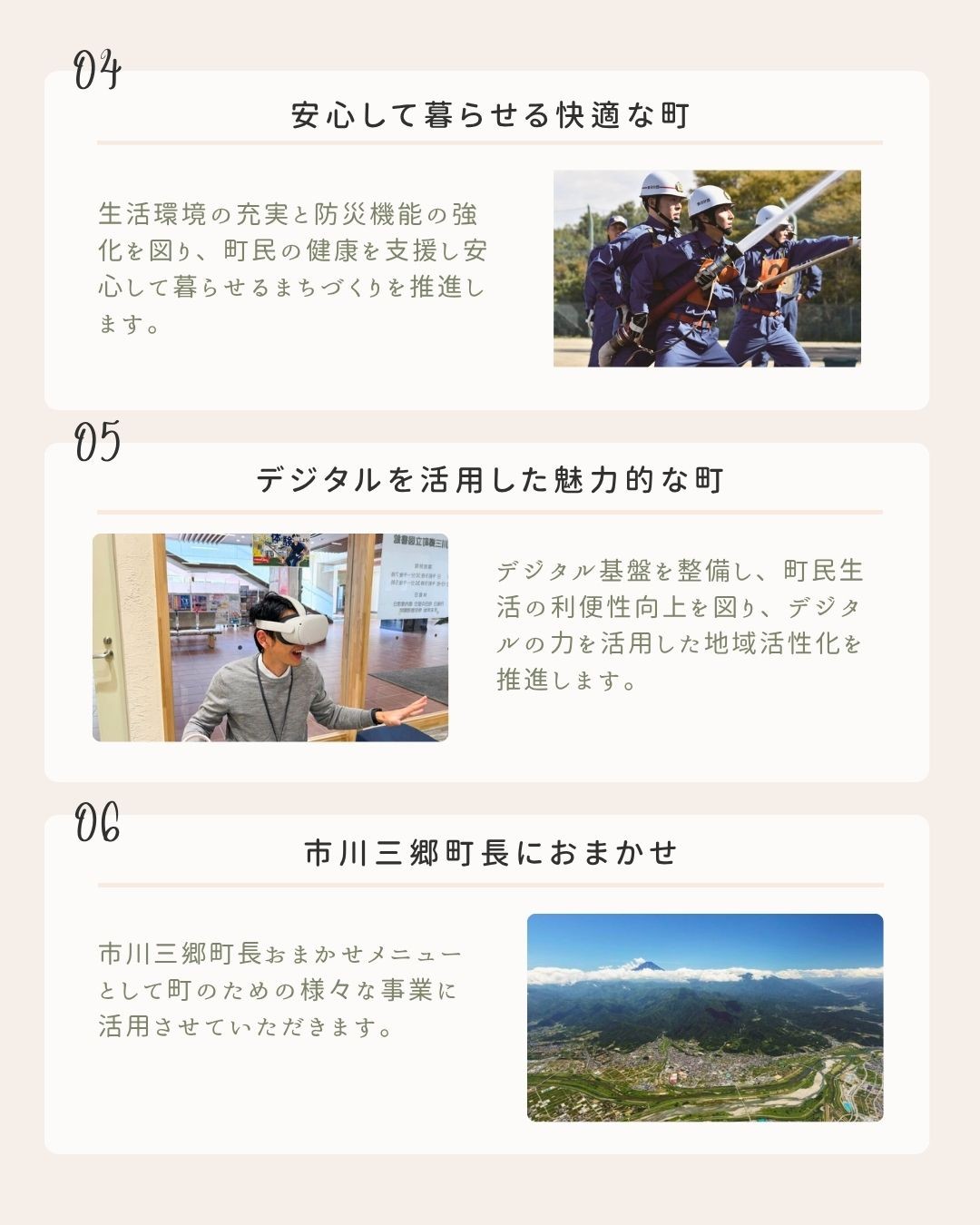 皆さまからのご寄附は、未来を担う子どもたちの育成、地域産業の活性化、安心して暮らせるまちづくりに活用されます。これからも、市川三郷町の魅力を全国へお届けしてまいります。どうぞよろしくお願いいたします。