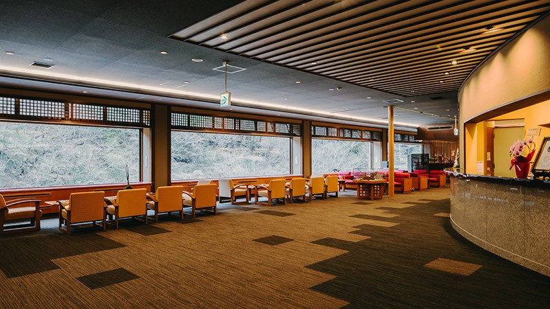 🌸1300年の歴史に対応するよう、「ロビー」をモダンで落ち着いた内装に