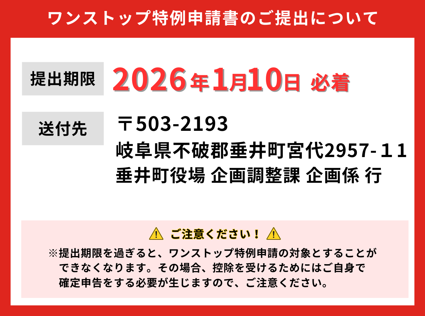 垂井町ふるさと納税について、2025~2026年にかけての年末年始のご案内です。