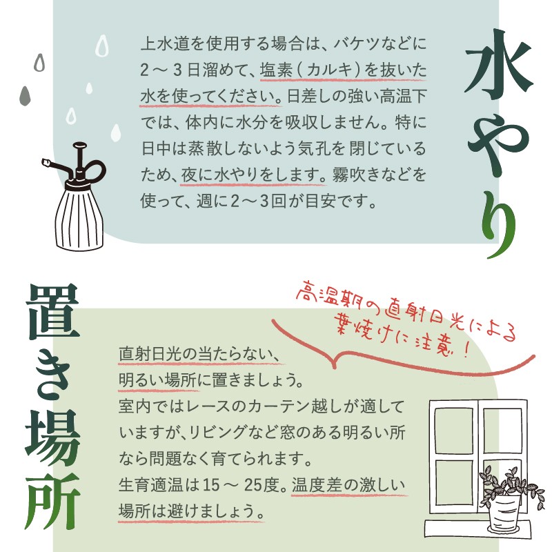 週2~3回を目安に、夜、霧吹きなどで水やりをおこないます。