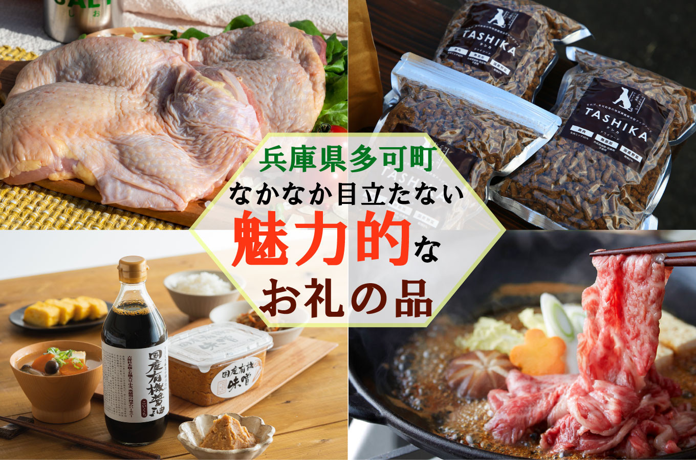 兵庫県といえば神戸ビーフが有名です。多可町には牧場はありませんが、神戸牛は地域資源認定されているので、牧場がない多可町でも取り扱うことができます。特別な日の神戸ビーフ、普段使いの神戸ビーフなど、多数取り揃えています。また、多可町には有機JAS認定蔵の国産有機醤油、無添加のドッグフード、およそ100日間育てられた播州百日どりなど、魅力的なお礼の品があります。この機会に多可町を知っていただけたら幸いです。