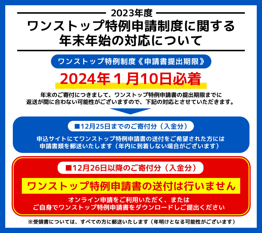 【重要】ワンストップ特例申請に関する年末年始の対応について