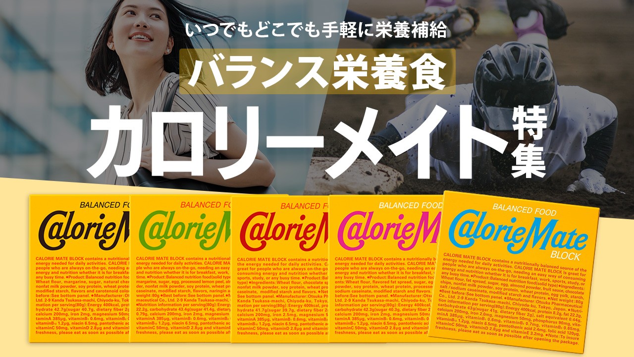 一食分(2本)のカロリーメイトで200キロカロリー前後のエネルギーを摂取することができ、エネルギー補給が簡単です。