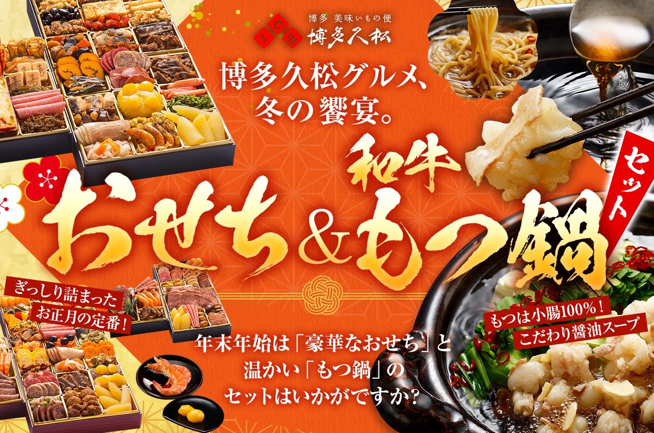 博多久松のおせちと国産和牛小腸100%のもつ鍋の贅沢セット!