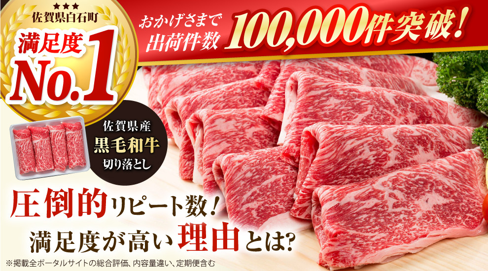 圧倒的リピート率を誇る『佐賀県産黒毛和牛 切り落とし』。 おかげさまで出荷件数10万件を突破いたしました! みなさまに選ばれるヒミツとは…?