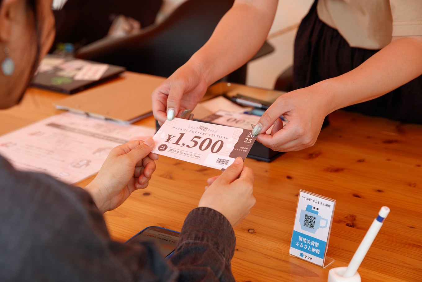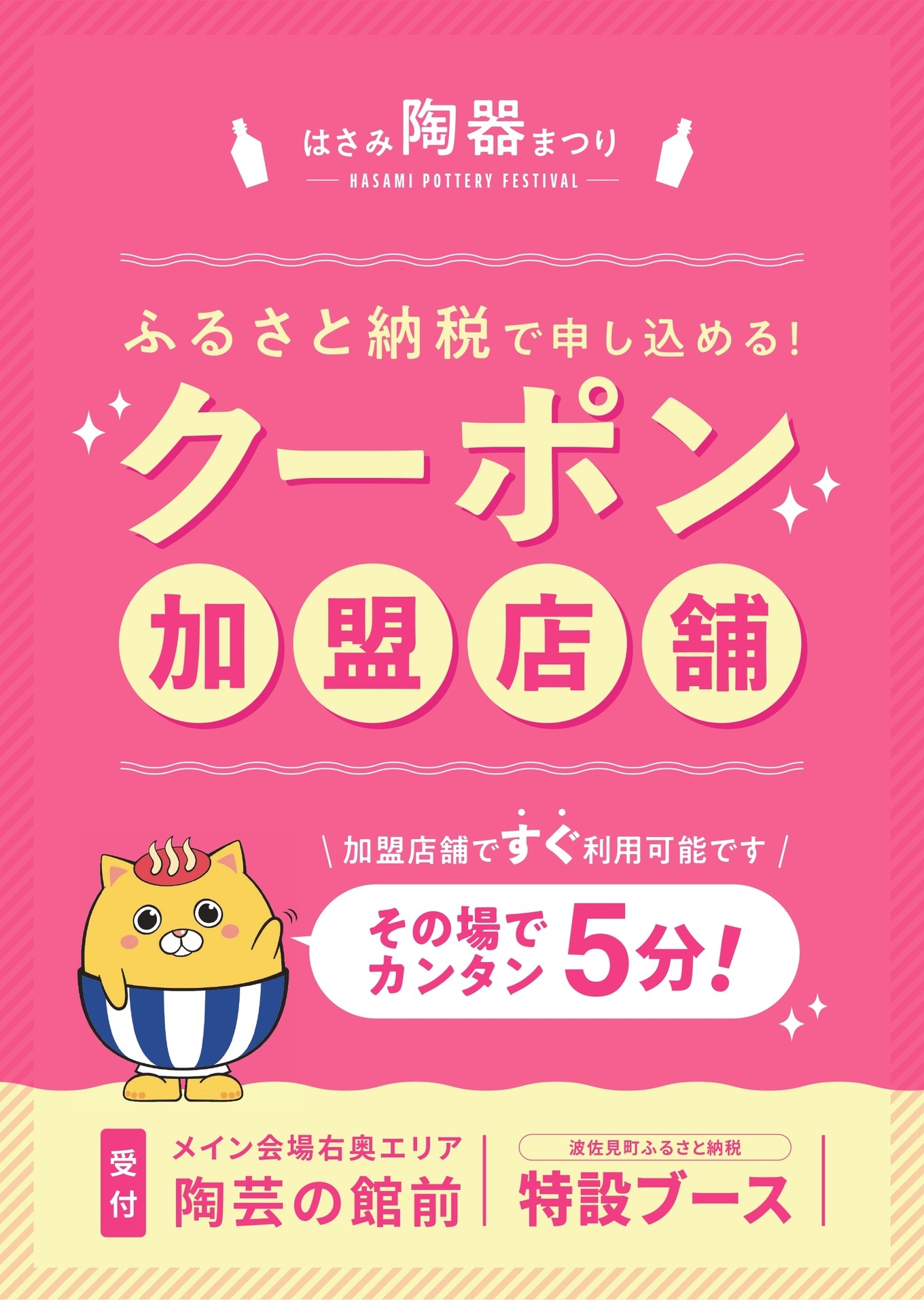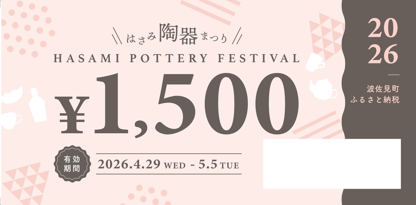 波佐見町へのふるさと納税寄附5,000円に対して、1,500円分のクーポン券を発行。波佐見陶器まつり期間中に、クーポン加盟店でのお会計に使えます。