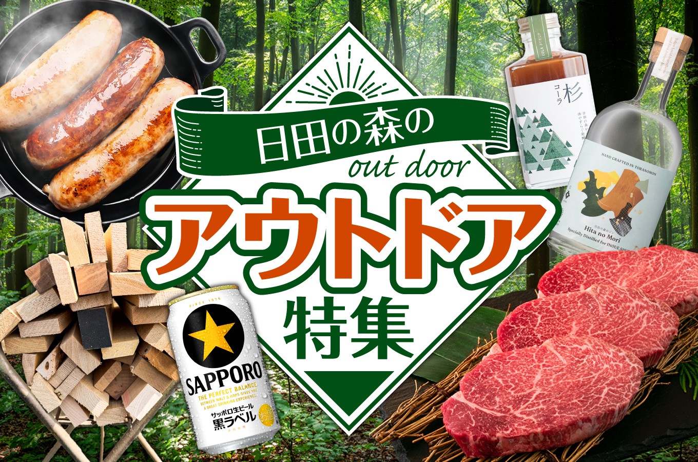 週末は、日田で遊ぼう! アウトドアシーズン、いよいよ本番。 焚き火を囲むなら、やっぱり日田のお肉。冷えたビールに、ジューシーなソーセージ。 日田市には、外遊びをもっと楽しくしてくれる返礼品がそろっています。