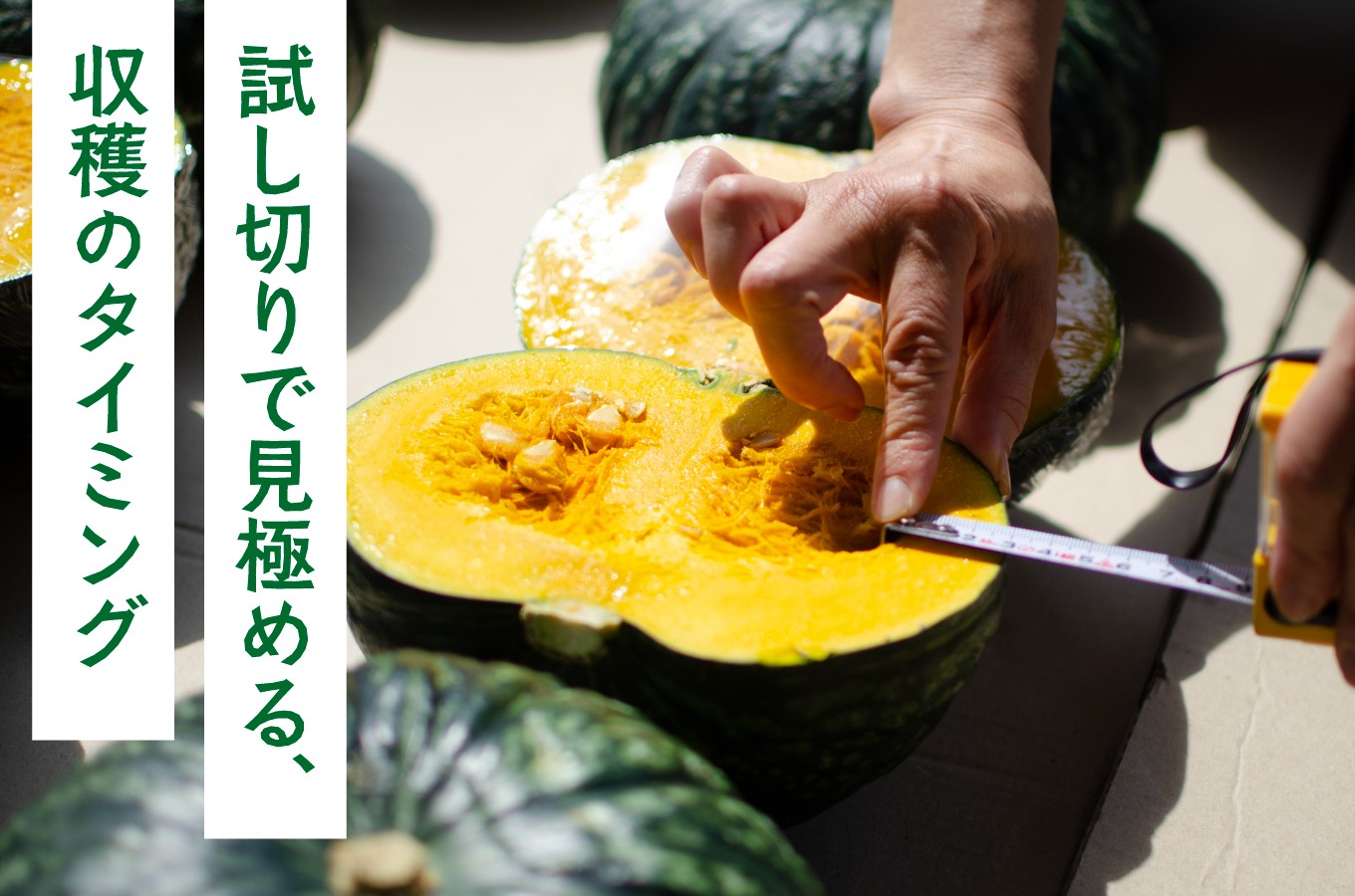 試し切りで見極める完熟かぼちゃ