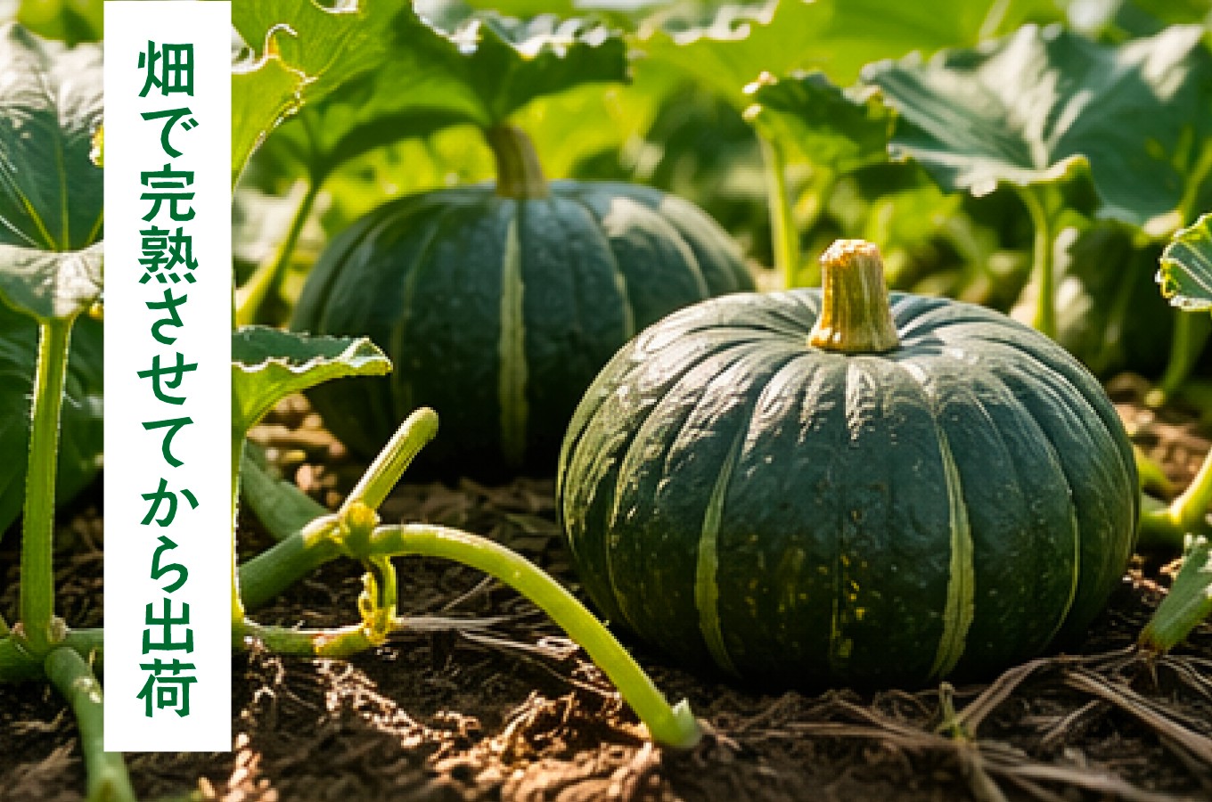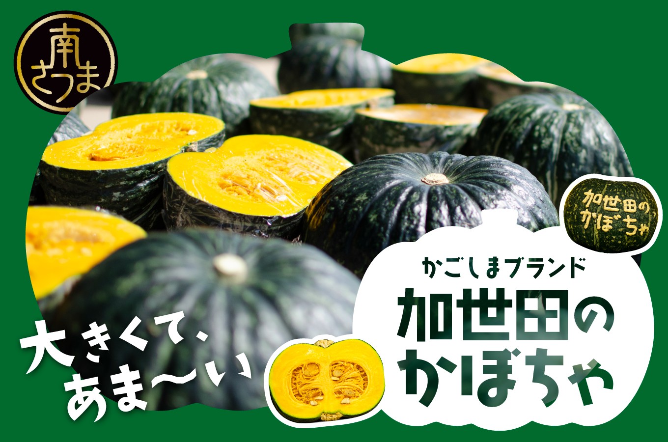 鹿児島県南さつま市・加世田のかぼちゃ特集。畑で完熟を待ち、収穫前の試し切りで見極めたものだけを出荷。かごしまブランド第1号の産地から、品質のそろったかぼちゃをお届けします。