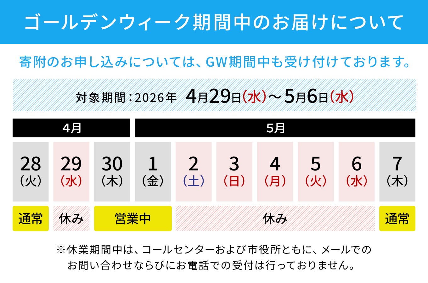 沖縄県浦添市のゴールデンウィーク期間中のお届けについて