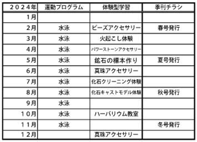 その結果、令和5年度の活動実績としてスポーツ事業「水泳教室(4回)」「水泳練習会(4回)」、体験型学習事業として「コパールをみがいてみよう(1回)」「ワークショップ(真珠・1回、ハーバリウム・2回)」を開催することができました。