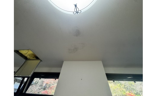 当時は床を清掃し、様子を見ながら工事を進めておりましたが、12月に入り天井のシミが目立つようになったため、専門業者に詳しく調査を依頼いたしました。その結果、当時の雨漏りが原因で、広範囲にわたり天井や壁の裏側にカビが発生していることが判明いたしました。