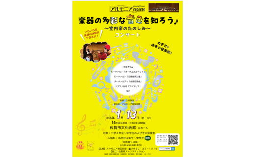 そこで、来年1月には、第2弾として、楽器の多彩な音色を知るためのコンサートを開催しすることとしました。