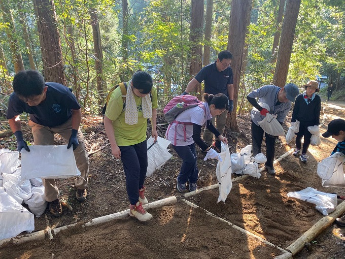 一方、紀伊山地は年間を通して雨量が多いことから、道から土が流れ出る等の侵食が起きやすく、道を良い状態に保つためには継続的な保全活動が欠かせません。そのため、和歌山県では現在、企業の方や一般の方など様々な方々にご協力をいただきながらこれらの参詣道の保全活動を行っています。
