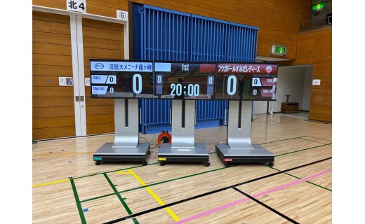導入した得点表示板を女子フットサルの公式試合などで使用させていただいています。