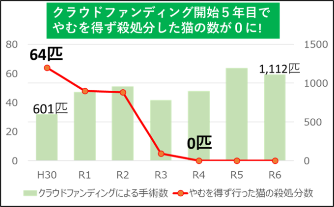【クラウドファンディングでの飼い主のいない猫への不妊・去勢手術等実施数】
